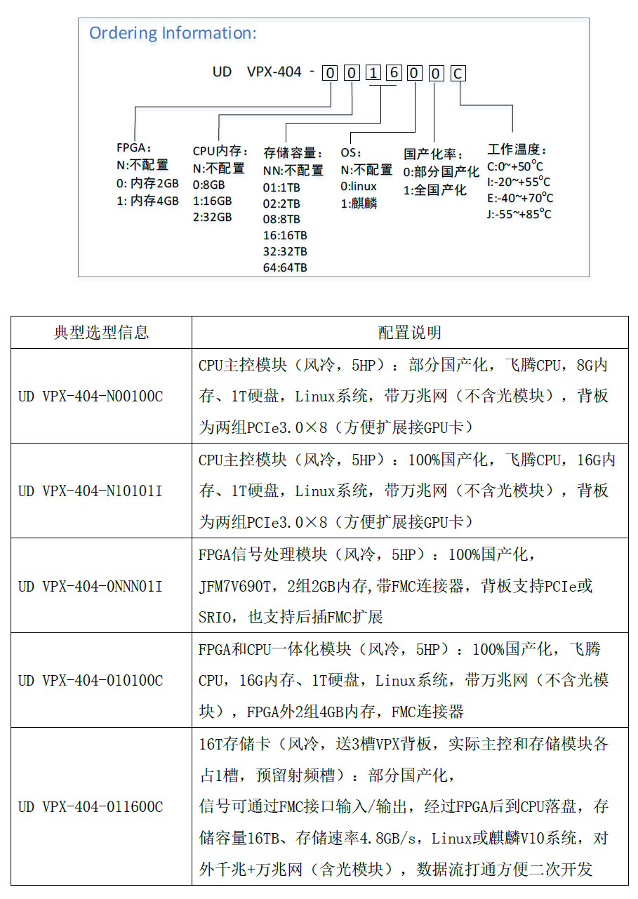 UD VPX-404是基于高速模拟/数字采集回放、FPGA信号实时处理、CPU主控、高速SSD实时存储架构开发的一款高度集成的信号处理组合模块,采用6U VPX架构,模块装上外壳即为独立整机,方便用户二次开发。