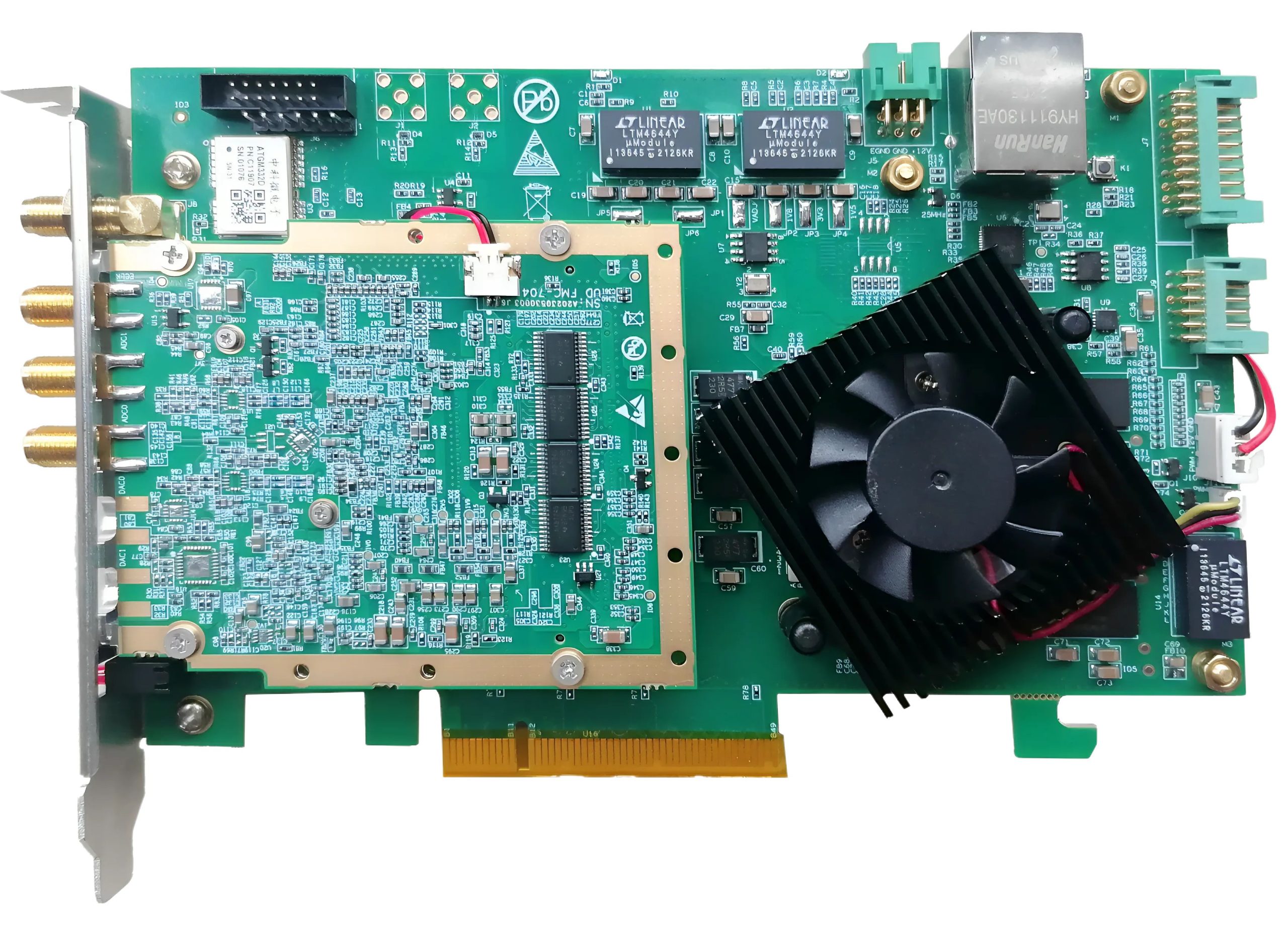 UD PCIe-402全国产化信号处理模块为标准PCIe全高半长的结构,对外支持PCIe2.0×8通信,也可以采用千兆以太网接口进行通信,模块为100%国产化设计(同时也兼容进口器件)。FPGA芯片可选进口XILINX公司的XC7K325T或XC7K410T,也可选国产的JFM7K325T、JFM7K410T,DDR3的存储容量可选配2GByte或4GByte。板载有1个FMC-HPC全互联的接口,可以适配大多数ADC/DAC FMC子卡。全部器件选择工业级和以上质量等级元器件。